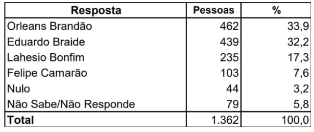 Primeira pesquisa de 2026 aponta Orleans Brandão com 33,9% e Braide com 32,2%