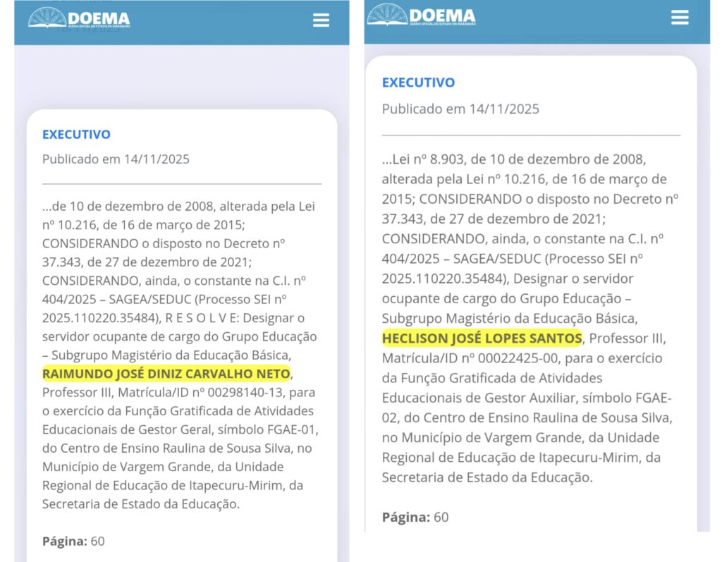 O Professor Raimundo José Diniz Carvalho Neto foi oficialmente nomeado pelo governador Carlos Brandão e pela Secretária de Estado da Educação, Jandira Dias Araújo Silva, como Diretor Geral do Centro de Ensino Raulina de Sousa Silva. Com ampla experiência na área educacional, o professor Neto Diniz já atuou como diretor geral do Centro de Ensino […]
