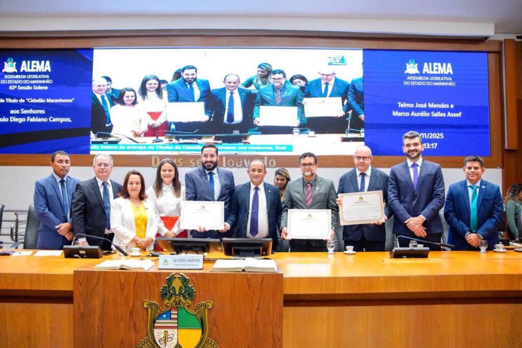 A Assembleia Legislativa do Maranhão realizou, na tarde desta terça-feira (18), sessão solene para a entrega do ‘Título de Cidadão Maranhense’ ao engenheiro civil e professor Telmo José Mendes e aos médicos Marco Aurélio Salles Assef e Eustáquio Diego Fabiano Campos. A cerimônia, realizada no Plenário Nagib Haickel, foi proposta pelo deputado Aluízio Santos (PL) […]