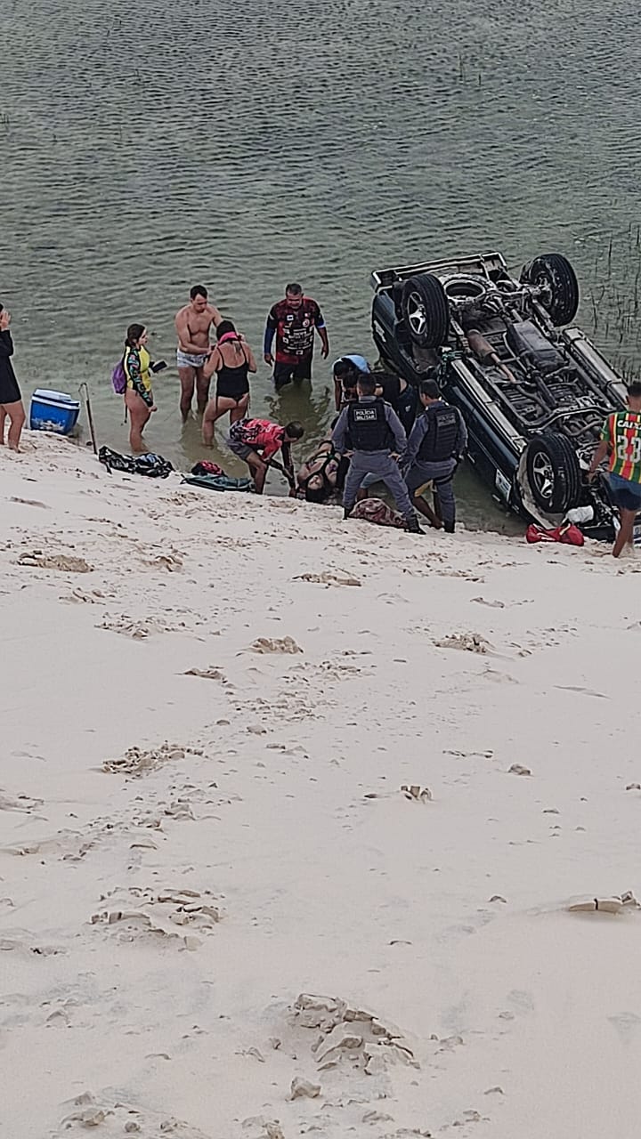 Um terrível acidente na tarde de hoje, nas dunas do município de Santo Amaro do Maranhão, deixou várias pessoas em estado grave. Toyota que transportava um grupo de turistas perdeu o controle e caiu em uma das lagoas. O mais grave é que no município não havia ambulâncias disponíveis para atender as vítimas do acidente. A cidade está passando por um caos social, onde a falta de saúde e a insegurança afetam gravemente a pacata população. Os turistas acidentados foram levados por veículos de populares ao município de Barreirinhas onde receberam os primeiros atendimentos. Até o momento,